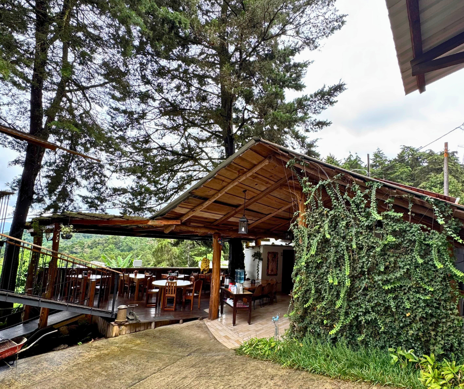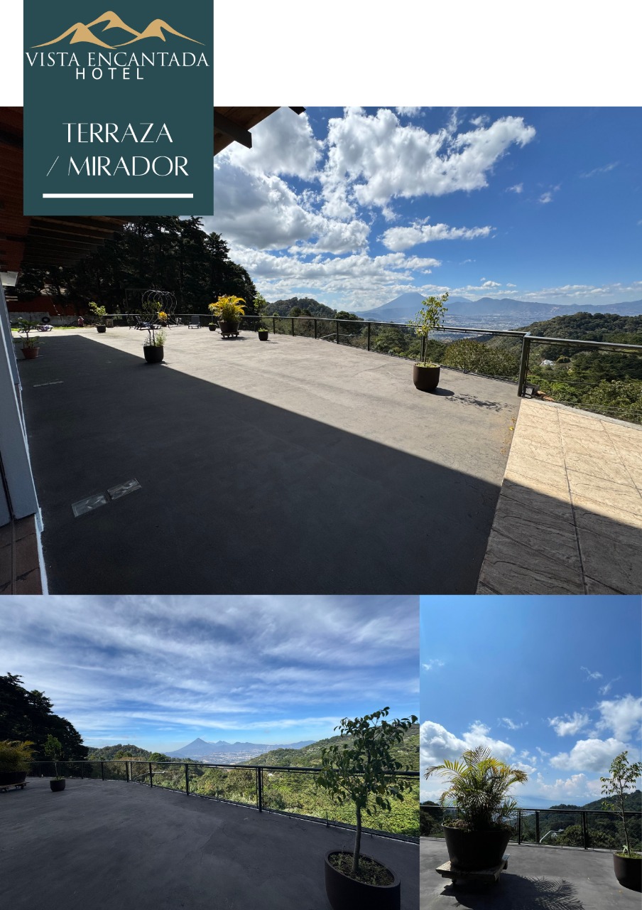 Áreas verdes, senderos naturales, mirador con vista a bosques y volcanes